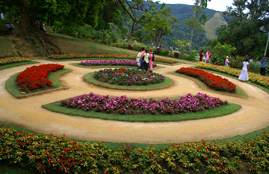 10 km on the Badulla Road.The Garden was first established in 1860 under the curatorship of three Britishers of the same name - William Nock, JK Nocl and JJ Nock. It lies under the Hakgala Peak, between 5000-6000 feet in elevation - the highest set Botanical Gardens in the world. It boasts 100 year old Monetary Cypress trees from California, Japanese Cedars, Himalayan Pines and English Oak. The Botanical Garden is first as a cinchona plantation andthen adapted to an experimental garden for the acclimatization of plants from temperate zones in the tropics. Here can be found all the flowers of an English cottage garden in spring and summer, and much else besides - such as the oldest tea-bush in the island, an ornamental pond and quaint summerhouse. Hakgala (Jaw Rock) rises a sheet 1500 ft/460 meters and offers one of the most stunning views ever. Legend says it was part of the Himalayas carried here by the Monkey God - Hanuman in his quest to help God-Rama rescue Goddess - Sita from the demon king - Ravana. Sita-Eliya, site of Sita's imprisonment, stands a mere mile away, with the 'Sita Amman Kovil' close by.
