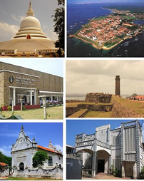 Galle (Sinhala: ගාල්ල;Tamil: காலி) is a major city in Sri Lanka, situated on the southwestern tip of Sri Lanka, 119 km from Colombo. Galle is the administrative capital of Southern Province, Sri Lanka and the district capital of Galle District. Galle was known as Gimhathiththa (although Ibn Batuta in the 14th century refers to it as Qali before the arrival of the Portuguese in the 16th century, when it was the main port on the island. Galle reached the height of its development in the 18th century, during the Dutch colonial period. The major river in the area is the Gin River (Gin Ganga), which starts from Gongala Kanda and, passing villages such as Neluwa, Nagoda, Baddegama, Thelikada, and Wakwella, reaches the sea at Ginthota. The river is bridged at Wakwella by the Wakwella Bridge. Galle is the best example of a fortified city built by the Portuguese in South and Southeast Asia, showing the interaction between Portuguese architectural styles and native traditions. The Galle fort is a world heritage site and the largest remaining fortress in Asia built by European occupiers. Other prominent landmarks in Galle include the city's natural harbor, the National Maritime Museum, St. Mary's Cathedral founded by Jesuit priests, one of the main Shiva temples on the island, and Amangalla the historic luxury hotel. On 26 December 2004 the city was devastated by the massive Boxing Day Tsunami caused by the 2004 Indian Ocean earthquake that occurred a thousand miles away, off the coast of Indonesia. Thousands were killed in the city alone. Galle is home to a cricket ground, the Galle International Stadium, rebuilt after the tsunami. Test matches resumed there on December 18, 2007. Rumassala in Unawatuna is a large mound-like hill, which forms the eastern protective barrier to the Galle harbour. Local tradition associates this hill with some events of the Ramayana.